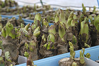 さっそく山からタラの木を切ってきて、バケツに立てて