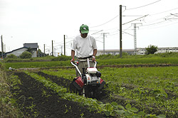| 梅雨の晴れ間に培土作業 |